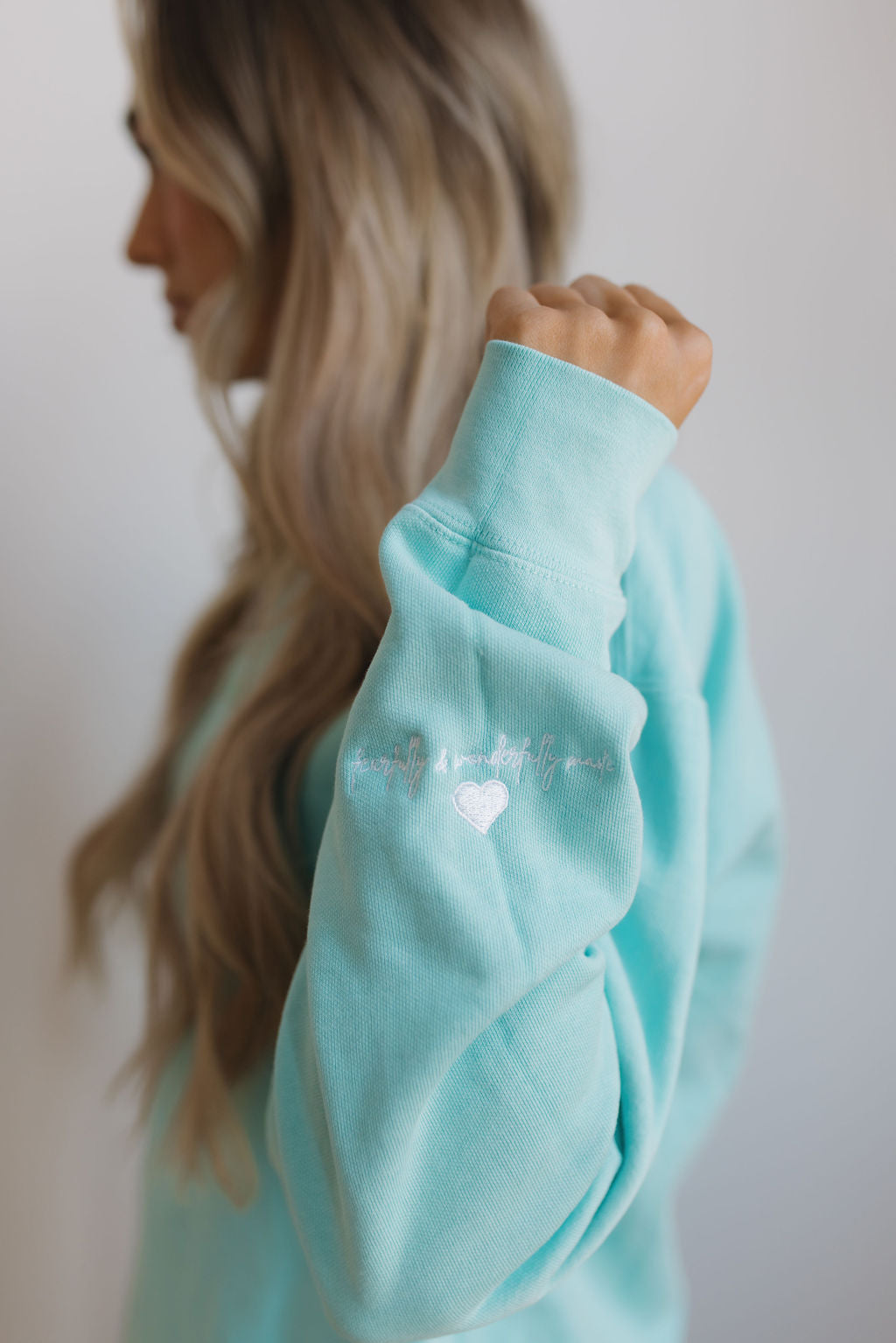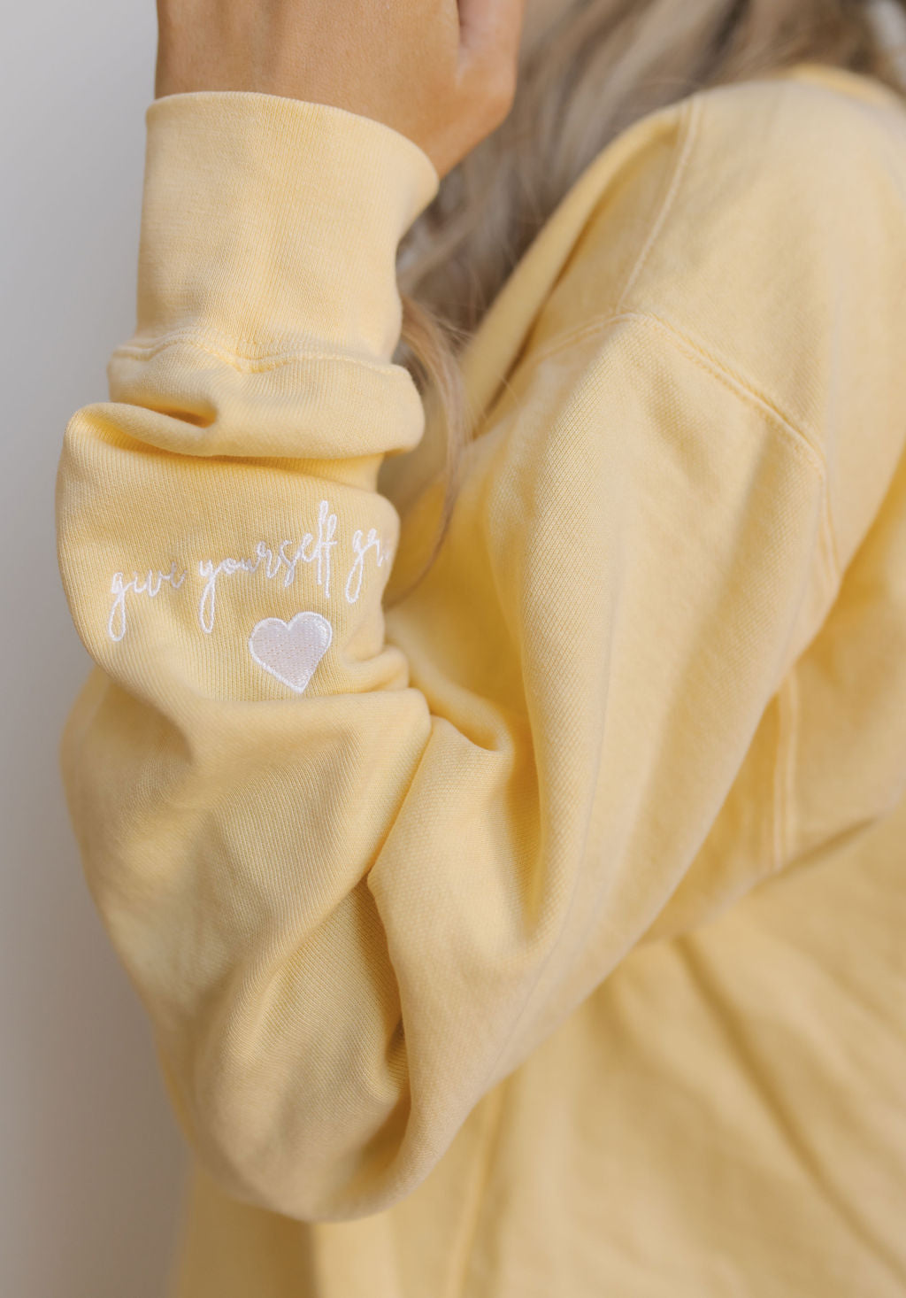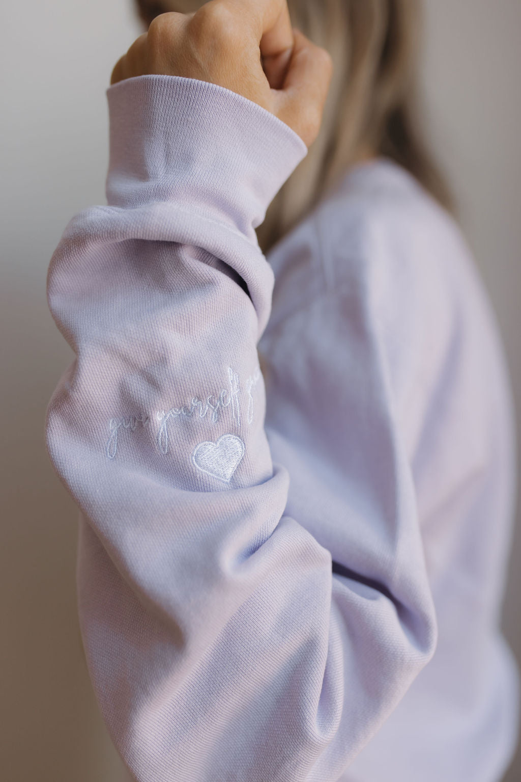 Sleeve embroidery options: 'Give yourself grace' or 'Fearfully & wonderfully made'