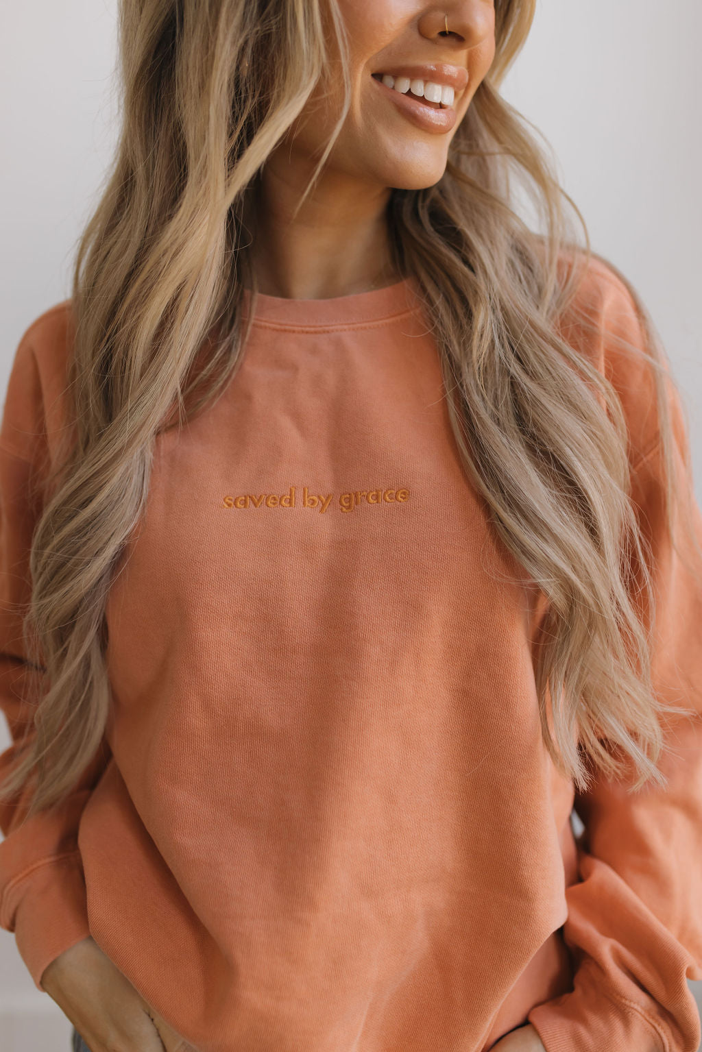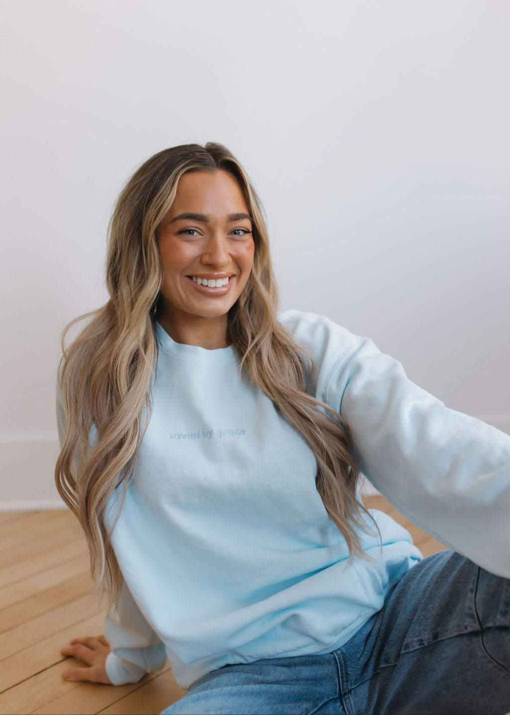 This crewneck features “Saved by Grace” embroidery in a timeless script — a wearable mantra for anyone walking through change, healing, or growth. Cozy enough for everyday wear, meaningful enough to carry with you always.