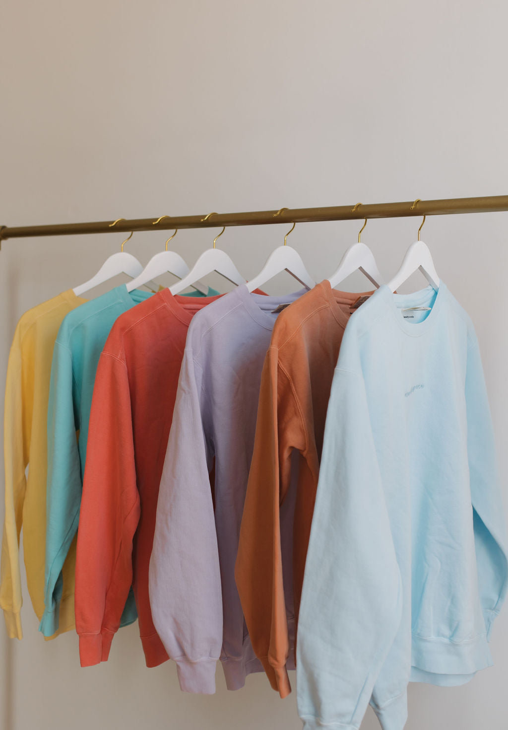 Available in mint, sky blue, lavender, coral, orange, and yellow.